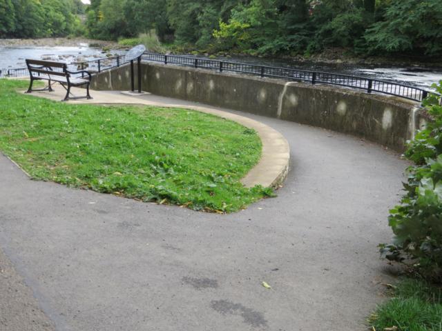 Linked to two other photo-trails in Flatts Wood, this route offers a tranquil riverside trail alongside the picturesque River Tees, past “The Silver Bridge” (Tees Aqueduct built in 1893) and the Weir to a picnic area on the site of a former Roman Ford below the Castle. The picnic site was created in 2000 to celebrate the town’s link to the river and also commemorate an ancient Roman Ford discovered there. The 3 stone seats signify the “Tees Roll” - the action of the river being “The Dive”, “The Surface” and “The Roll”. The route is 500m from the car-park to the picnic site. Parking is available by “The Silver Bridge” but bays are not marked and the surface can be uneven with compacted gravel and soil in parts. In a number of locations, the gradient exceeds 5% (1 in 20), with the steepest being 16% (1 in 6) on the approach to the viewing point over-looking the Weir. Paths are generally non-smooth tarmac and with block-paving at the picnic site and widths range from approximately 1.5m–2.0m. A seat is provided at the Weir and 3 are available at the picnic site.