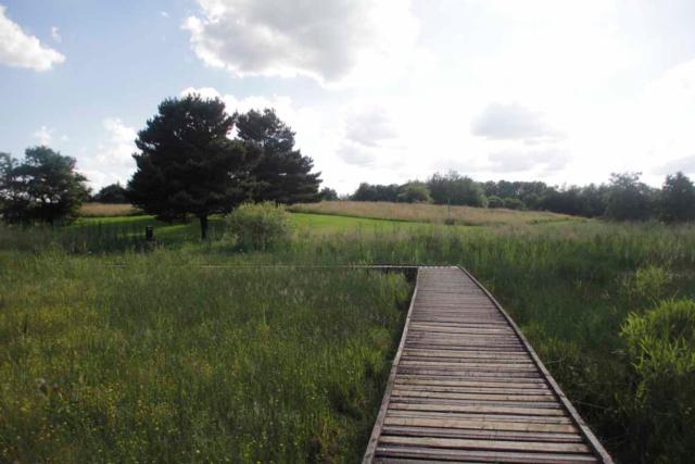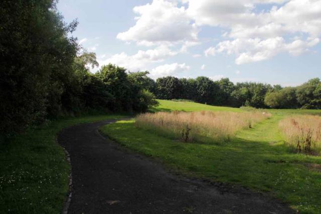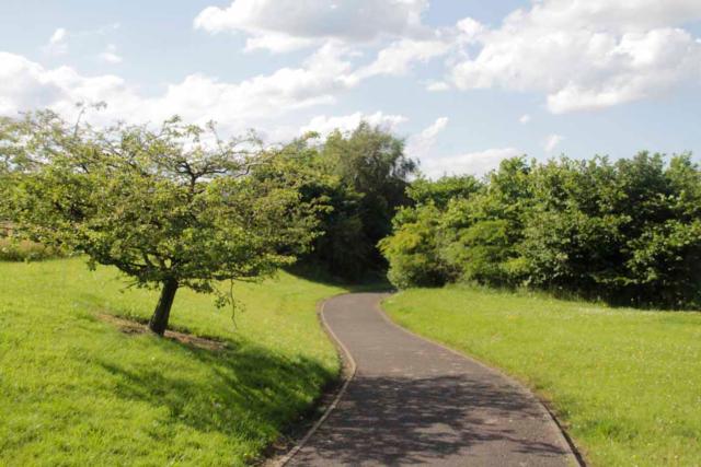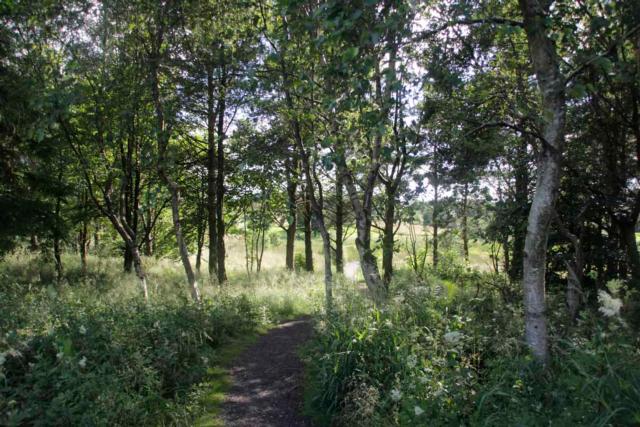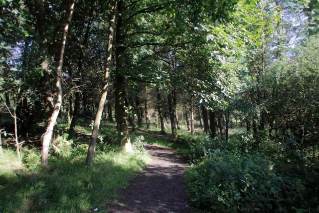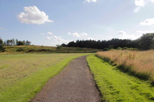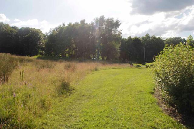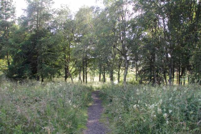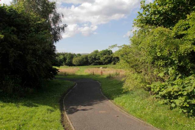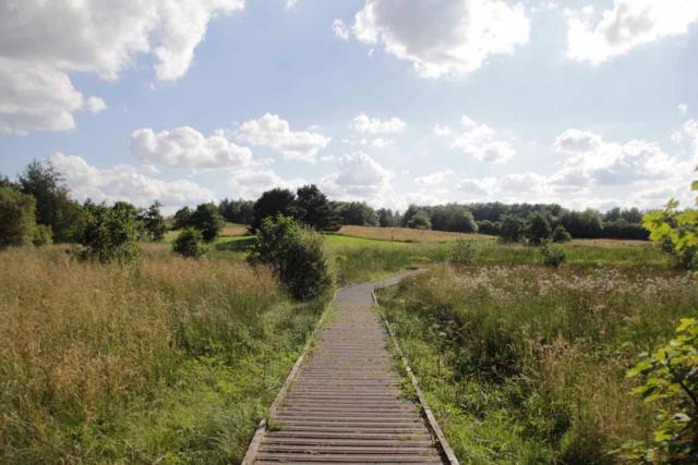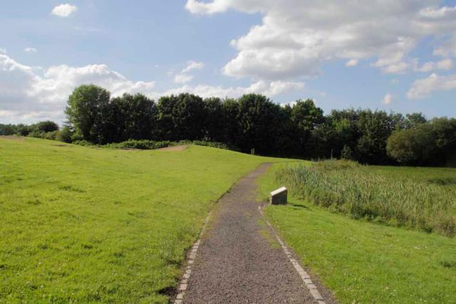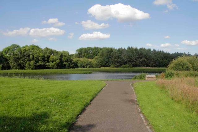 Circular walk around St Maurice's Pond. The pond is a Site of Importance for Nature Conservation with areas of reedbed, open water, mixed woodland, parkland, wildflower meadows, orchid meadows and orchard. Cumbernauld Living Landscape has a Wild Walk around the site encouraging the public to record wildlife in the area. great site for waterbirds, wildflowers, butterflies and dragonflies. Path is comprised mainly of loose gravel and is approx 1.8 metres wide for much of it's length, though it does narrow slightly in places. There is one steep uphill section on the anti-clockwise section, however taking the path clockwise eliminates this as the slope in that direction is almost imperceptible (though you still have to come down it!). there is a boardwalk section over the pond.